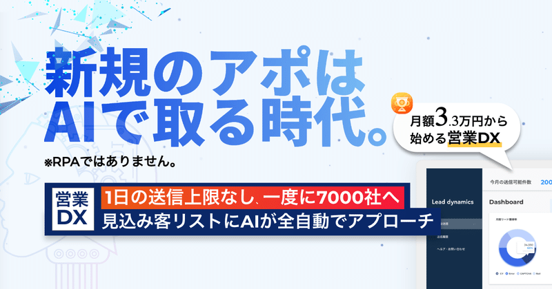 リードダイナミクスは新規営業のための革新的なAIツールです。このツールは以下の特徴を備えています。新規営業を効率化するには同時刻に数千件、予約送信ができるAI搭載のSaasをお使いください。